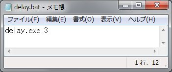 テキストファイルの中は「delay.exe 3」と書いておきます。