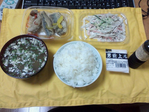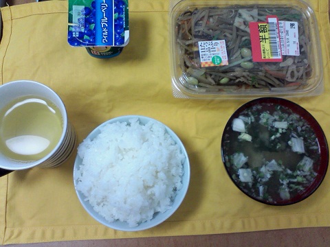 昼は食堂だから、特に考えてない。ただ、休みの日は朝おきるのが遅いから昼飯もおかず1つの場合もあり