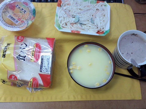 みそ汁とコーンスープはお湯入れるだけでできるの買ってるから楽チン