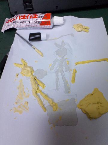 まずは大体の寸法を書いた紙の上にポリパテをモリモリ