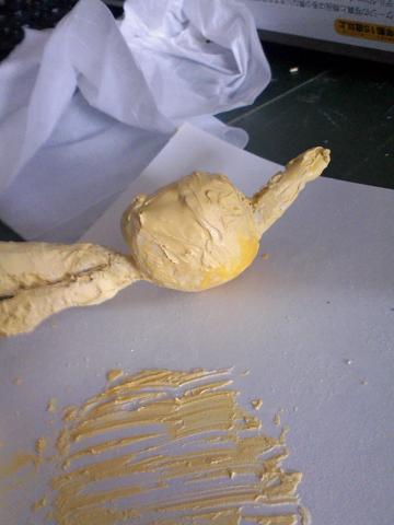 心材をつくって、針金で形を決めても、少し触ったら形が変わる