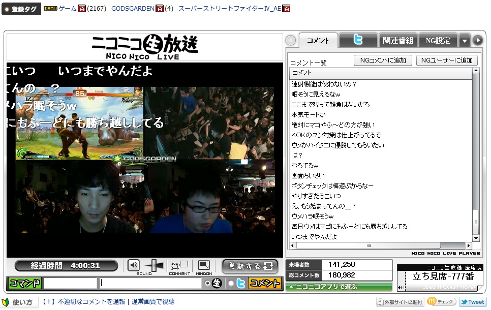 ニコ生にはいると立ち見席777番